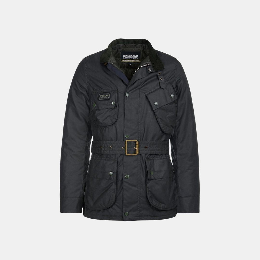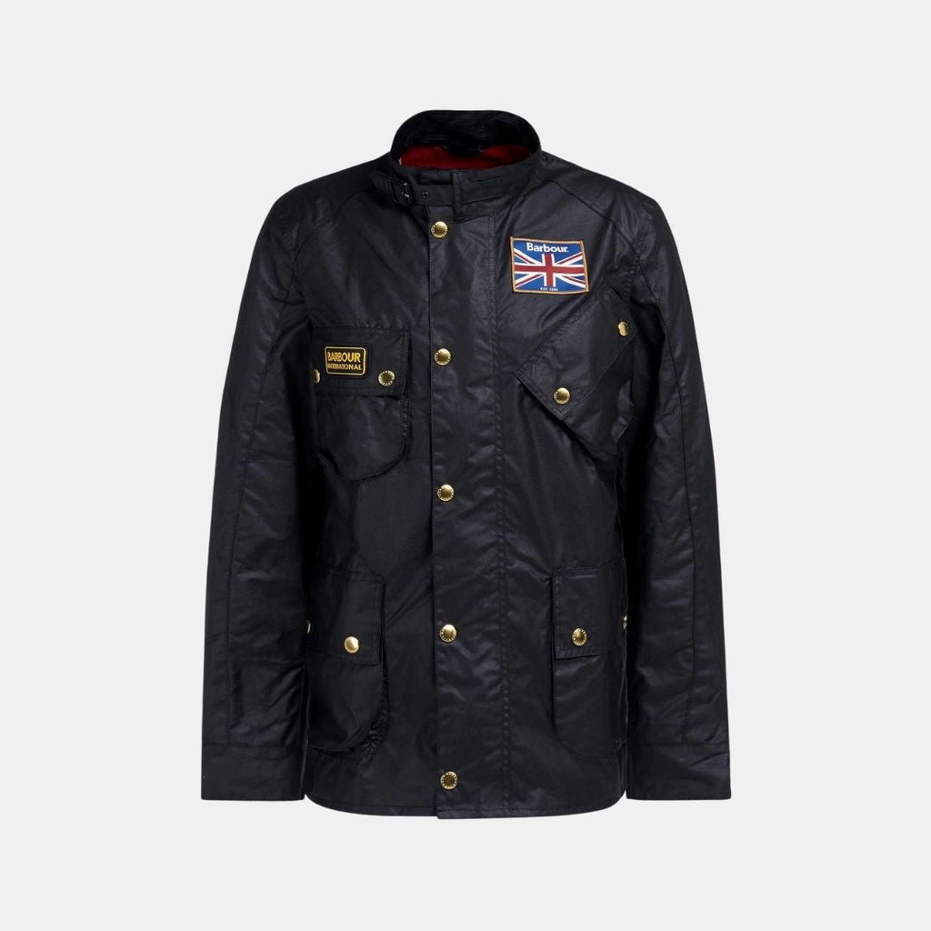 Barbour International Union Jack International Wax Jacket Fit Tailored Black