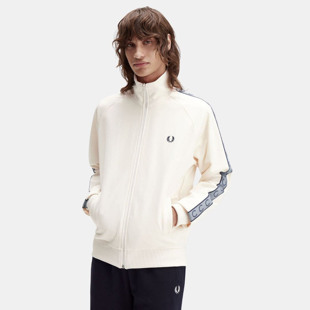 Fred Perry Contrast Tape Track Jacket Ecru & Navy - S / Beige is backordered and will ship as soon as it is back in stock.