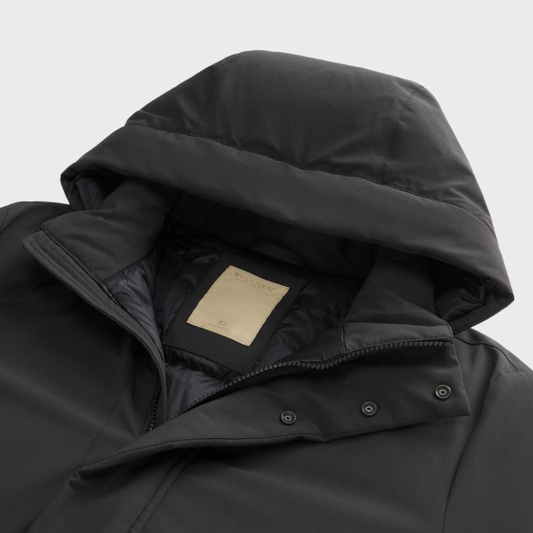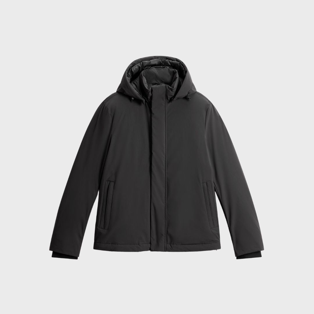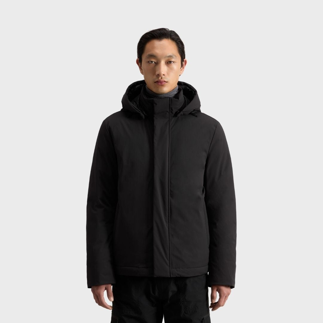 Woolrich Men's Stretch Nylon Jacket With Padding And Removable Hood Black