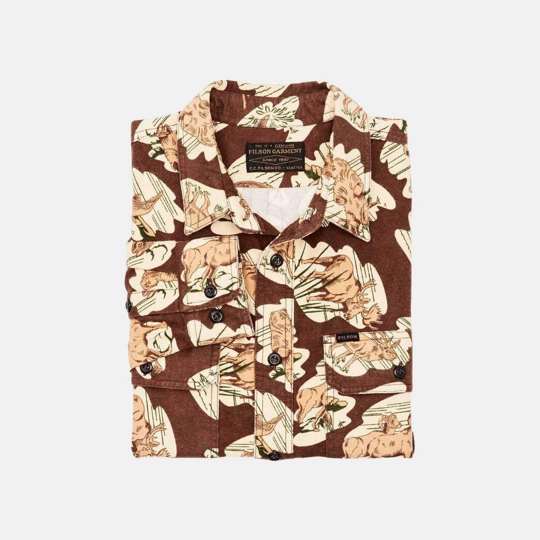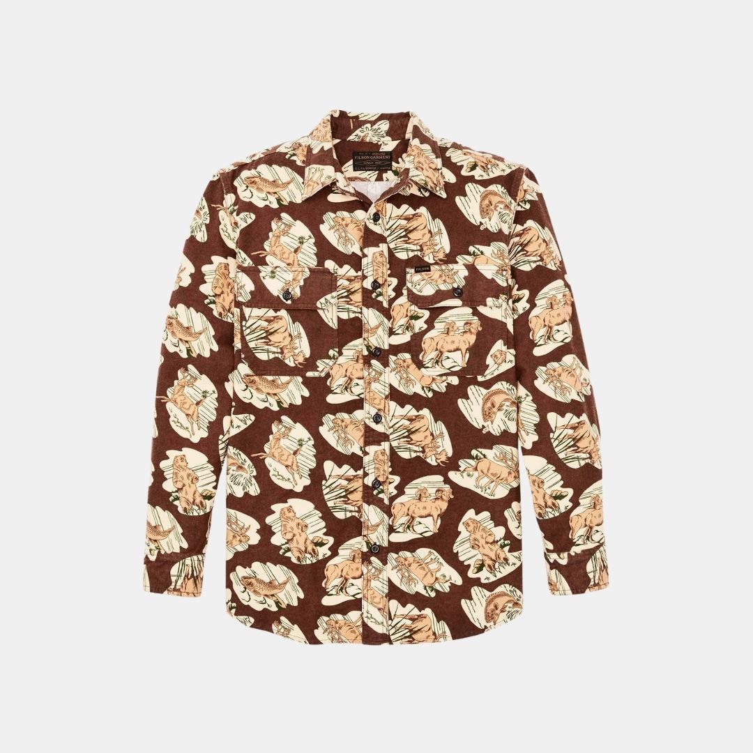 Filson Field Flannel Shirt Sorrel Horse Wildl - S / Brown is backordered and will ship as soon as it is back in stock.